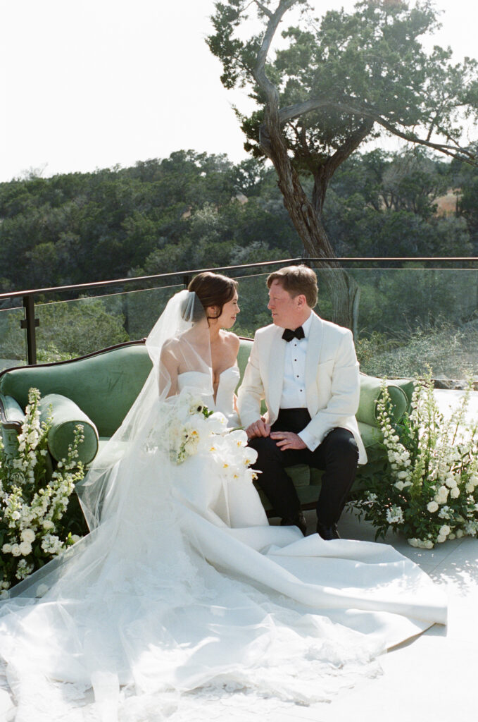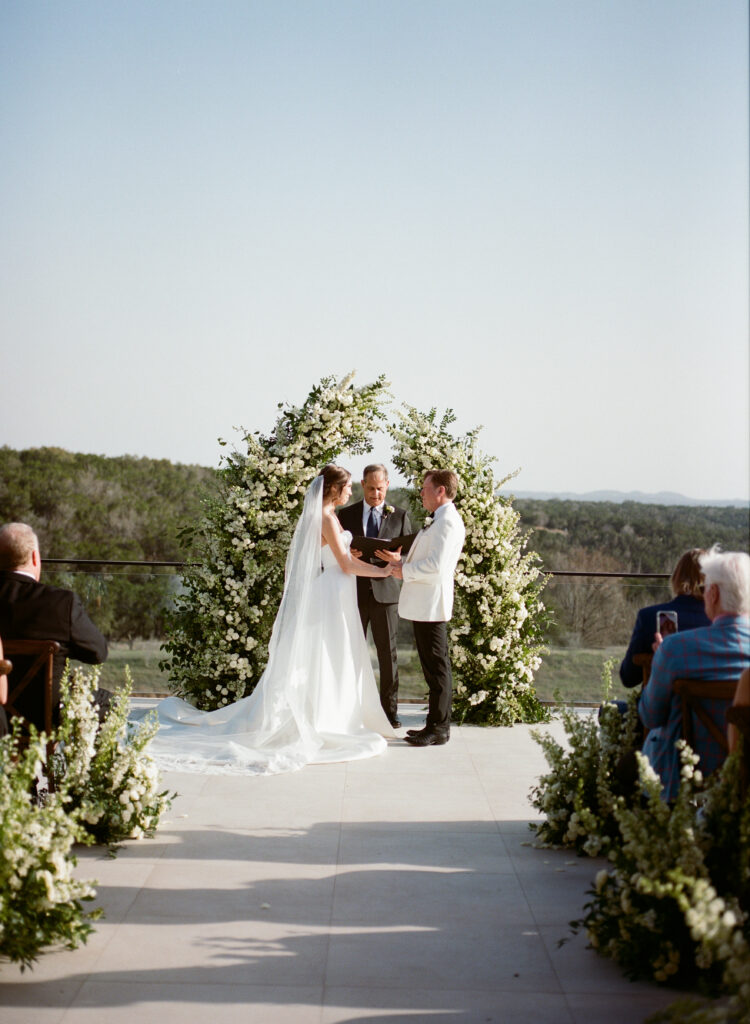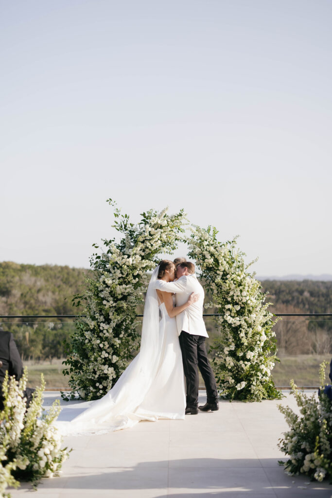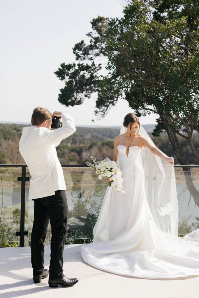 Kate and John’s wedding at the Videre Estate was classic Western, edited through a clean, chic lens: thoughtful, tailored, and sunlit from start to finish. Set in the Texas Hill Country near Wimberley, just south of Austin, the estate’s sweeping views and lake backdrop gave their day that wide-open, golden feeling without losing an ounce of refinement.