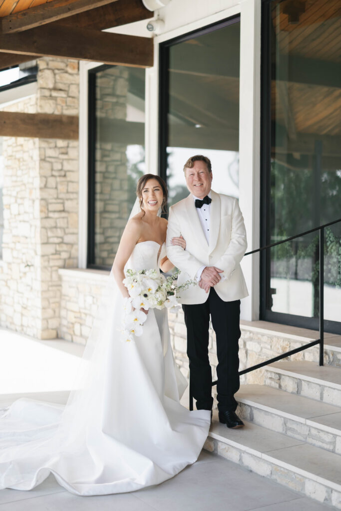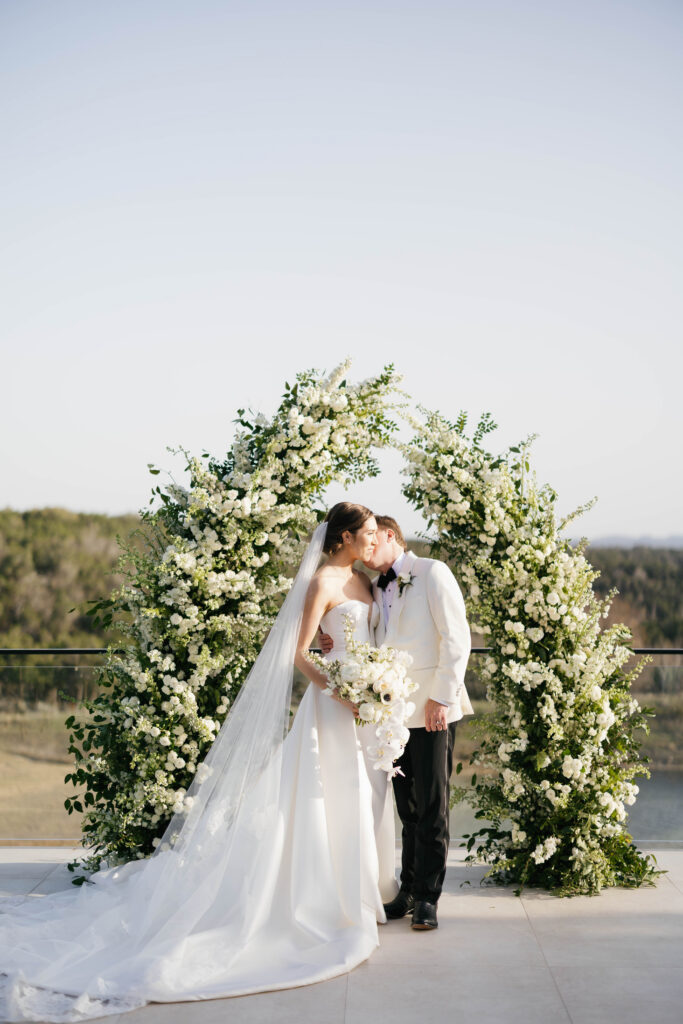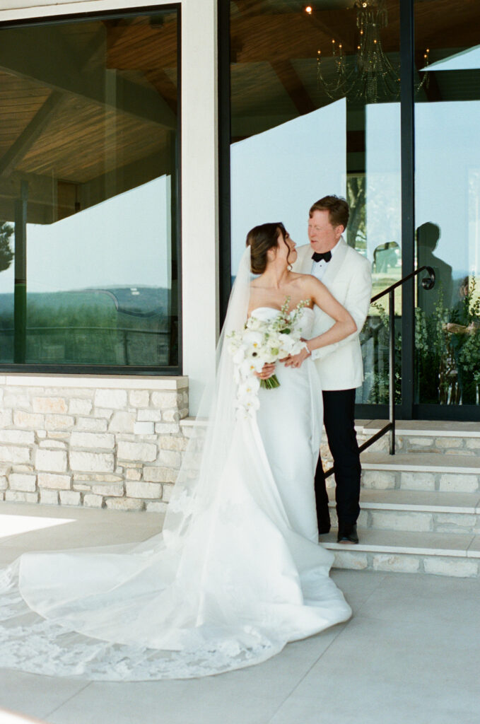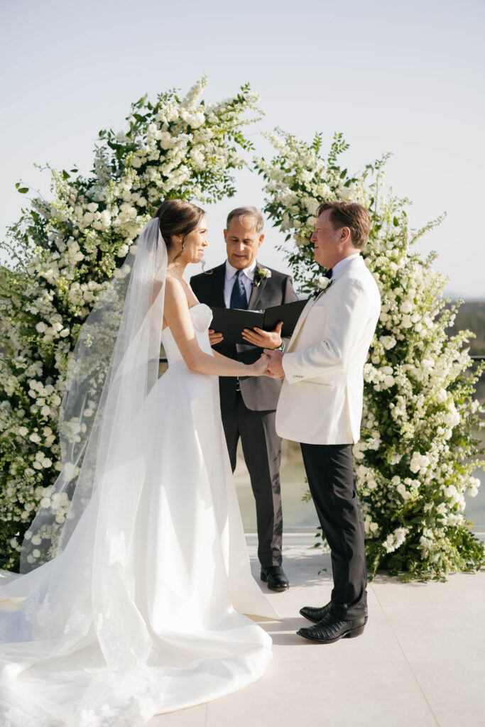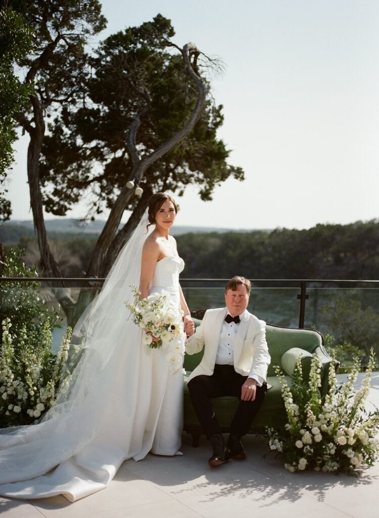 Kate and John’s wedding at the Videre Estate was classic Western, edited through a clean, chic lens: thoughtful, tailored, and sunlit from start to finish. Set in the Texas Hill Country near Wimberley, just south of Austin, the estate’s sweeping views and lake backdrop gave their day that wide-open, golden feeling without losing an ounce of refinement.